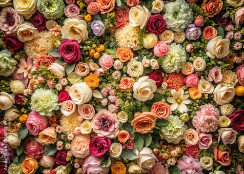 © Four888, Fototapeta premium Vintage Artificial Flower Wall Backdrop for Photography
