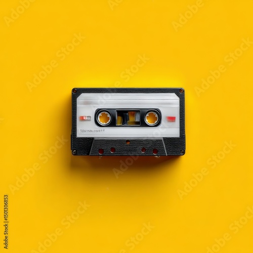 © Murad, Fototapeta premium Vintage Audio: A Cassette Tape Resting on a Vibrant Yellow Background, Evoking Nostalgia and Simplicity.