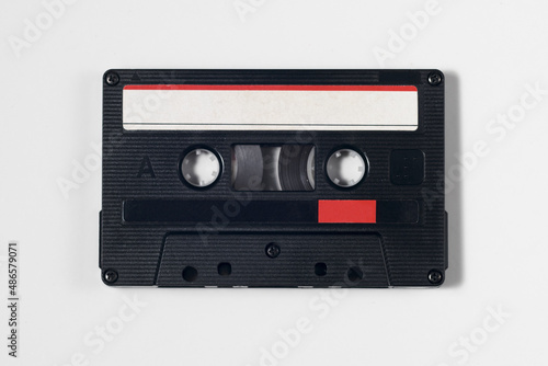 Obraz premium Vintage audio cassette isolated white background. red and white label. Use...