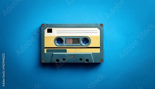 © Selene, Fototapeta premium vintage audio cassette tape on blue background