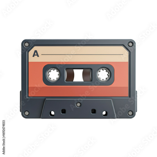 © loc, Fototapeta premium Vintage Audio Cassette Tape with Cream and Red Label on Transparent Background