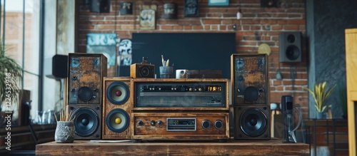 Fototapeta premium Vintage Audio Setup in a Rustic Loft