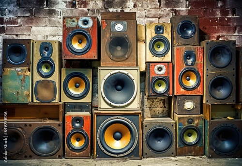 © jambulart, Obraz premium Vintage Audio Speakers arranged One on Top of the other
