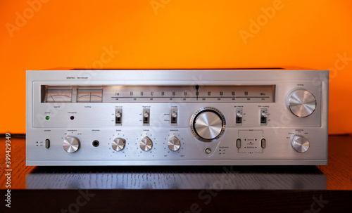 Obraz premium Vintage Audio Stereo Receiver with shiny metal front panel