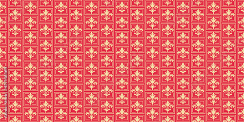© PETR BABKIN, Fototapeta premium vintage background pattern with floral ornament on a red background. Great for postcards, covers, wallpapers. Seamless pattern, texture for your design. Vector image