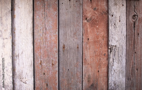 Naklejka premium vintage background texture made of wooden boards. The panels have partially lost their paint.