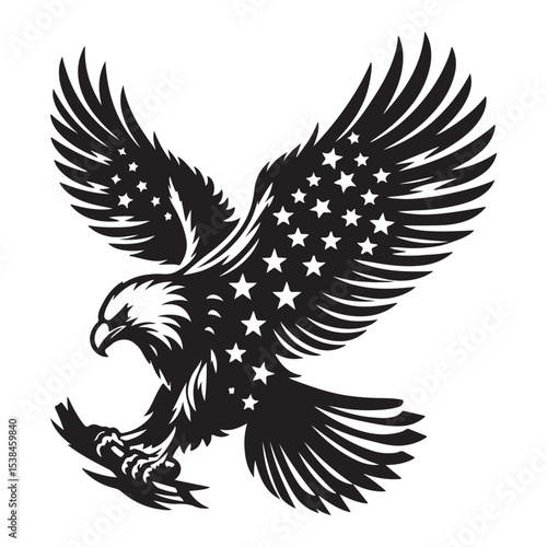 © Mosharraf, Fototapeta premium Vintage Bald Eagle Perch Vector – Patriotic Bird Silhouette Design