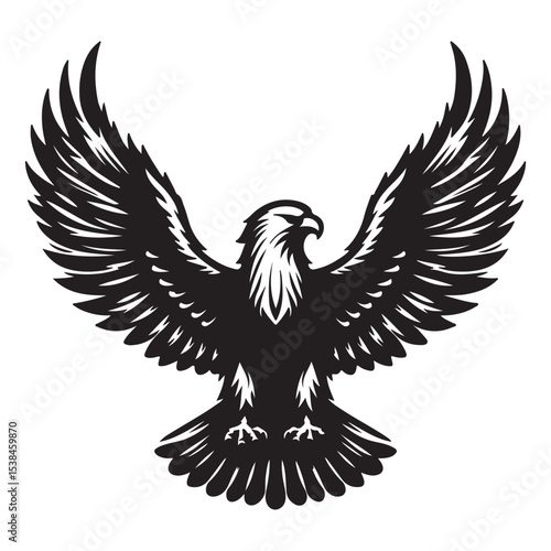 © Mosharraf, Fototapeta premium Vintage Bald Eagle Perch Vector – Patriotic Bird Silhouette Design