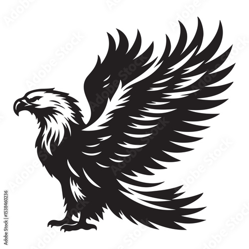 © Mosharraf, Fototapeta premium Vintage Bald Eagle Perch Vector – Patriotic Bird Silhouette Design
