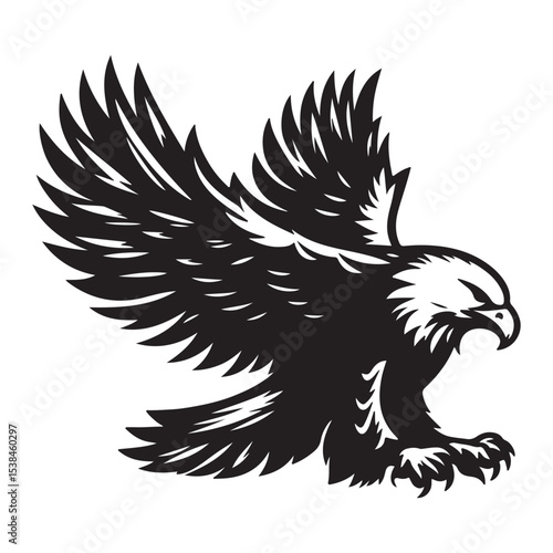 © Mosharraf, Obraz premium Vintage Bald Eagle Perch Vector – Patriotic Bird Silhouette Design