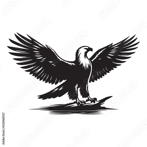 © Mosharraf, Fototapeta premium Vintage Bald Eagle Perch Vector – Patriotic Bird Silhouette Design
