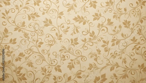 © Iqbal, Fototapeta premium Vintage Beige Paper Texture Wallpaper with Geometric Retro Curlicue and Leaf Pattern for Elegant Interiors