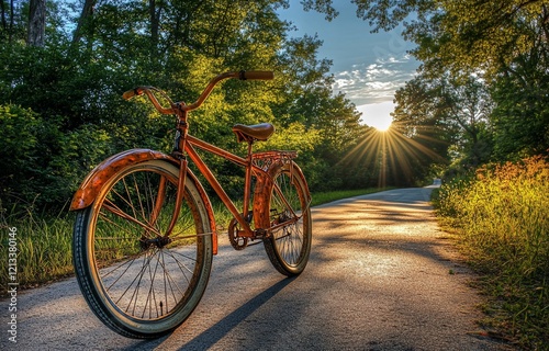 © BerkahStock, Obraz premium Vintage bicycle on sunlit path.
