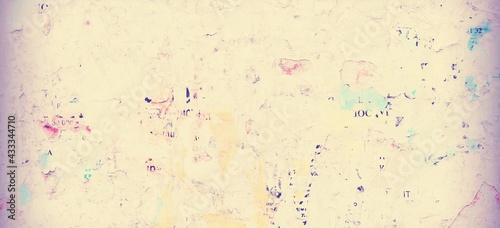 © Alex, Fototapeta premium Vintage Billboard with Torn Poster, Paper, Ads, Stickers Wide Background Or Texture. Urban Creative Wallpaper for Design. Abstract Web Banner. Panoramic Backdrop and Creative Surface.