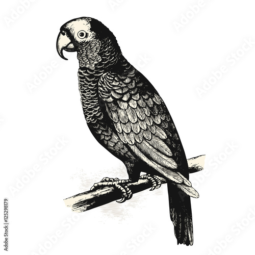 Obraz premium vintage bird engraving / drawing: parrot - retro vector design element