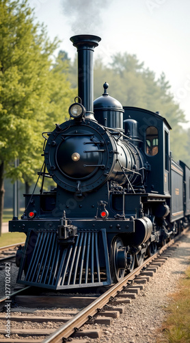 © lina, Fototapeta premium vintage black locomotive on the tracks