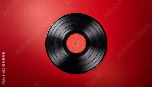 Fototapeta premium vintage black vinyl record on a vibrant red background perfect for music and...
