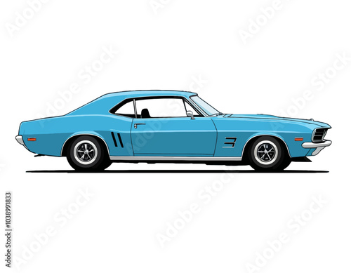 © Wirestock, Fototapeta premium Vintage blue car illustration