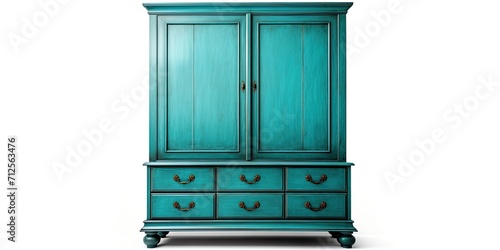 © Sona, Fototapeta premium Vintage blue dresser isolated on white. Ethnic antique cupboard. Clothing closet with vanity table.