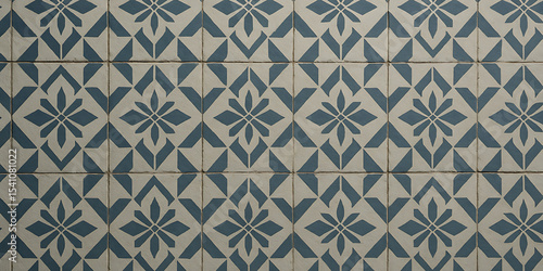 © Arbaz, Fototapeta premium Vintage Blue Tile Background, Geometric Floral Pattern Texture, Classic Ceramic Surface, Decorative Mediterranean Design