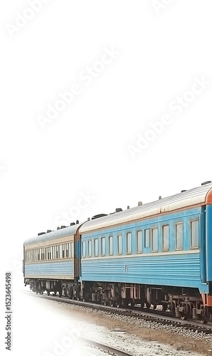 © Wachirasak Jamwimol, Obraz premium Vintage Blue Train Car on Tracks in Quiet Scenic Landscape