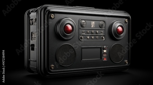 Obraz premium Vintage boombox with retro design and modern features on a black background
