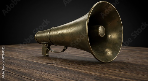 Naklejka premium Vintage brass megaphone announces important news, projecting a powerful,...
