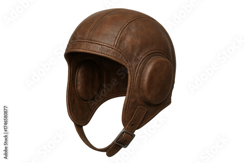 Naklejka premium Vintage brown leather aviator helmet with buckle strap