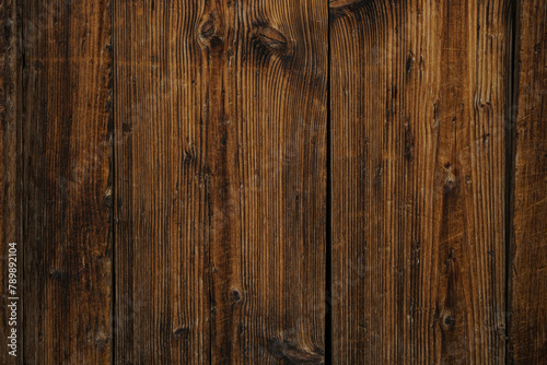 Naklejka premium Vintage brown yellow wood background texture with knots and nail holes. Old painted wood wall. Brown abstract background. Vintage wooden dark horizontal boards. Front view with empty copy space.