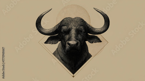 © ArtSlang.Creative, Naklejka premium vintage bull head engraving with geometric shape and taurus symbolism