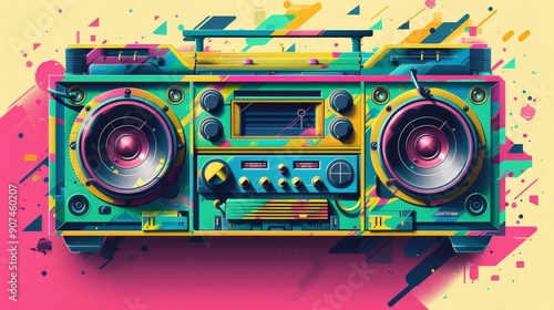 © Thanakorn, Obraz premium Vintage camera icon with retro music background and speakers