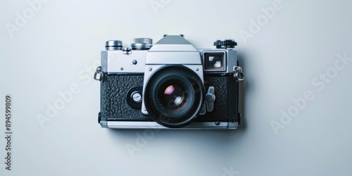 © igor, Fototapeta premium Vintage camera on neutral background, top view, photography conc