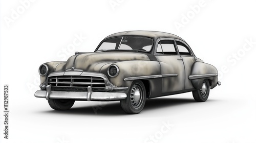 Obraz premium Vintage car isolated on white background. Old vehicle displays worn paint,...