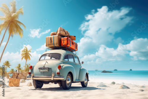 © Tidarat, Fototapeta premium vintage car with beach on background