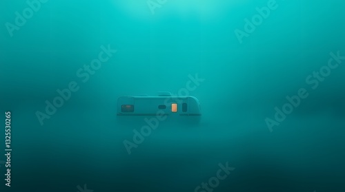 © Rifki Fachrudin, Fototapeta premium Vintage Caravan in Teal Mist with Glowing Window for Camping Adventure