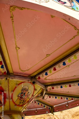 © Ruslan A, Naklejka premium vintage carousel at the fair against the blue sky