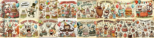 Fototapeta premium Vintage cartoon Happy Birthday. AI generated illustration