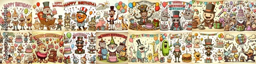 Fototapeta premium Vintage cartoon Happy Birthday. AI generated illustration