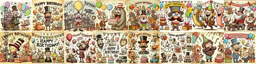 Fototapeta premium Vintage cartoon Happy Birthday. AI generated illustration
