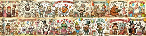 Fototapeta premium Vintage cartoon Happy Birthday. AI generated illustration
