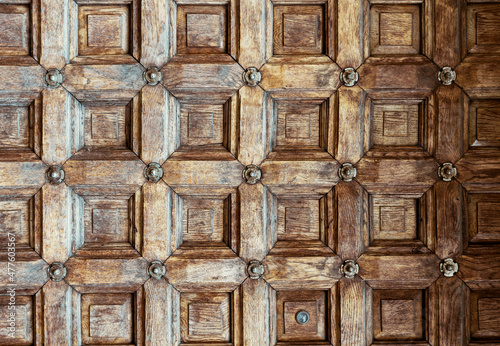 © Maryna Konoplytska, Obraz premium Vintage carved brown wood background