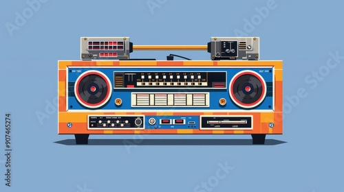 © Thanakorn, Fototapeta premium Vintage cassette player boombox isolated on white background, retro audio equipment icon