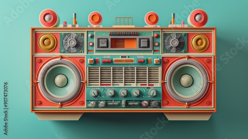 Fototapeta premium Vintage cassette player with radio, retro design, analog control panel,...