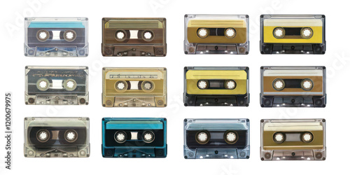Fototapeta premium Vintage Cassette Tapes Collection Displayed in Rows,PNG set collection,...