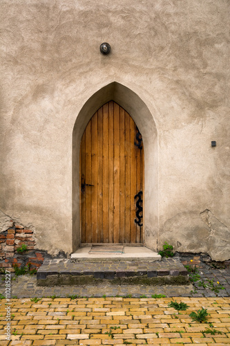 © raresb, Fototapeta premium Vintage castle door and concrete wall