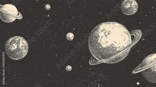 Naklejka premium Vintage celestial illustration of planets and stars in space