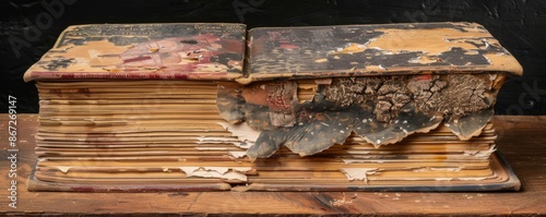 © LOMOSONIC, Naklejka premium Vintage Charm: Worn-Out Book with Delicate Hand-Painted Margins