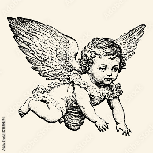 Fototapeta premium Vintage Cherub Angel Illustration.