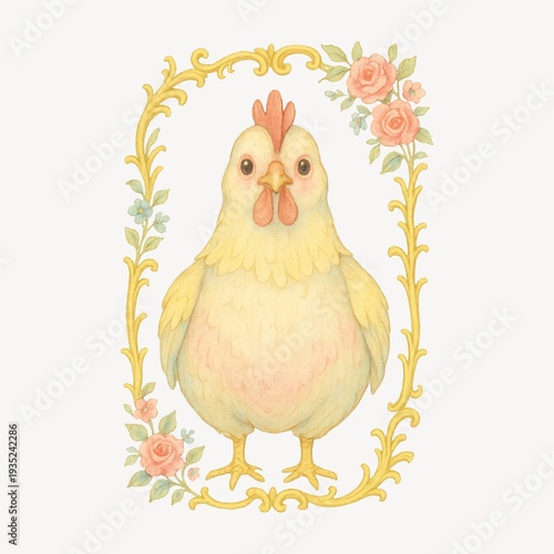 © Rawpixel.com, Fototapeta premium Vintage chicken illustration with flowers.