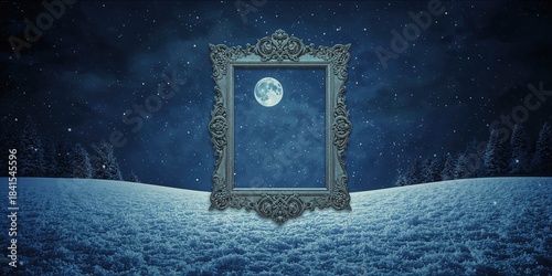 © AkuAku, Obraz premium Vintage Christmas night setting for greeting card or background, holiday celebration theme